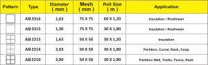 - Serbaguna, sebagai penyangga Glasswool/Rockwool dan Alumunium Foil di atap bangunan maupun pabrik, industri rumahan dan bangunan pribadi, dll.